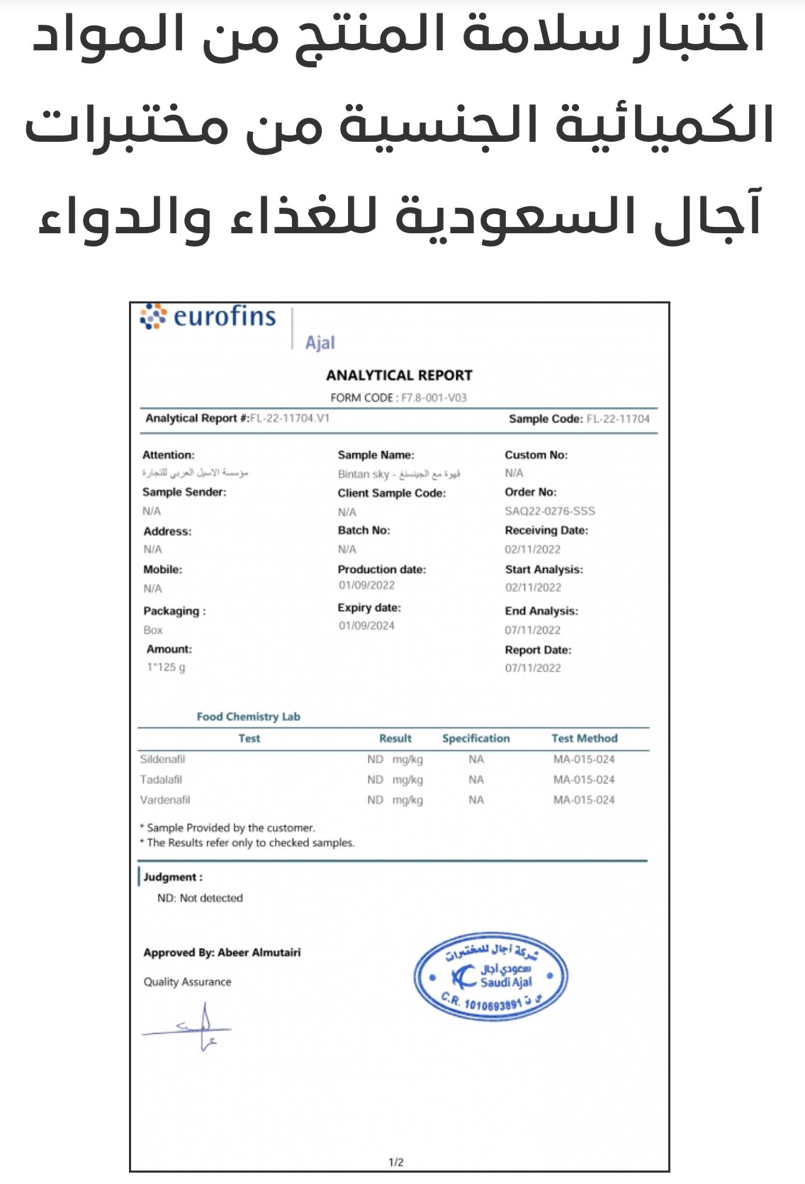 وشهادة مختبر آجال لخلو المنتج من المنشطات الجنسية